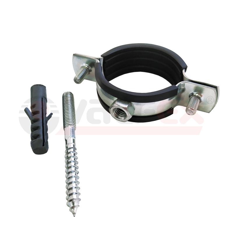 Хомут РМ d87-92мм 3дюйм с резиновым уплотнением (в компл. шпилька М8х80 и дюбель) оцинк. (50) VALFEX 45WR-90-М