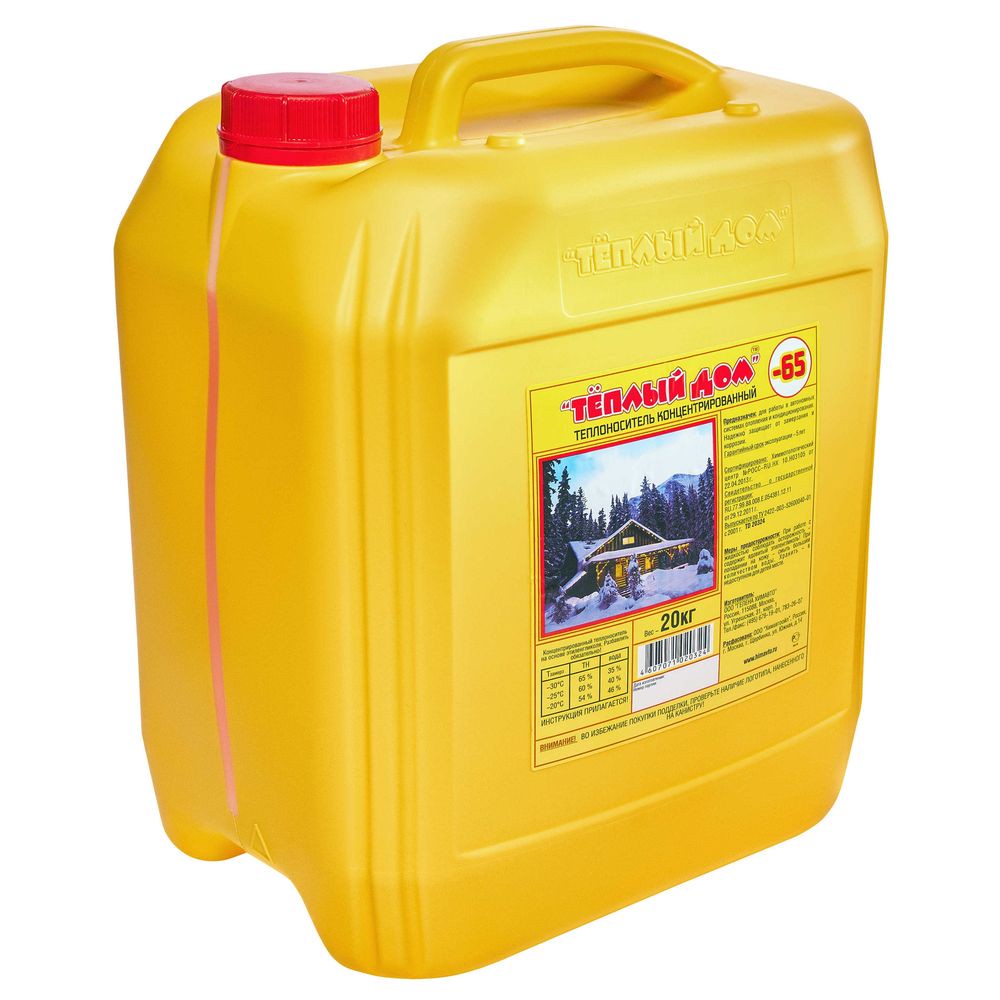 Концентрированый теплоноситель "Теплый Дом-65" производится с применением комбинированного пакета антикоррозионных, противонакипных и противопенных присадок и предназначен для получения теплоносителей отопления - водных растворов с меньшей температурой кристаллизации (замерзания). Уменьшение концентрации этиленгликоля (что снижает и температуру замерзания - начала кристаллизации) позволяет повысить теплоемкость и теплопроводность раствора, а также значительно уменьшить вязкость, тем самым улучшая циркуляцию теплоносителя в системе и существенно увеличить теплоотдачу системы. Наилучшими теплофизическими характеристиками для климатической зоны Центральной России обладают теплоносители, изготовленные на температуры начала кристаллизации на -25°С и на -30°С.