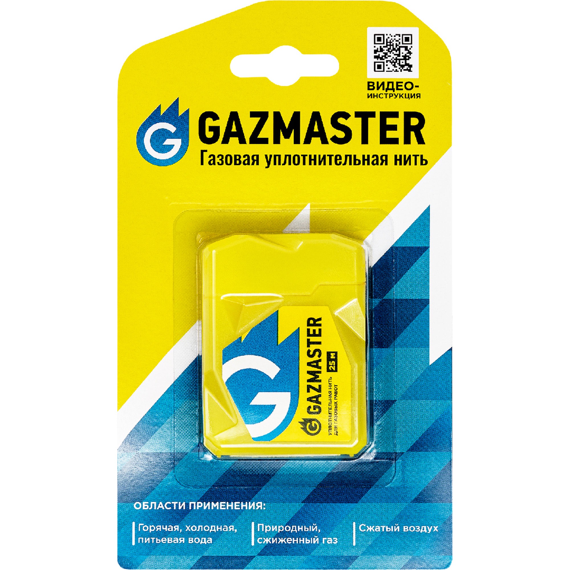 Нить Gazmaster создана специально для удобства работы в системах с газоснабжением и газораспределением. Нить имеет желтый окрас для удобной работы и состоит из 280 микронитей, пропитанных специальным герметизирующим составом, позволяющим быстро, надёжно и качественно уплотнить любое резьбовое соединение системы газоснабжения, расходуется экономично. При использовании этой полимерной подмотки материал не расходуется зря — не остается никаких лишних обрывков нити из-за удобной упаковки с острым ножом.