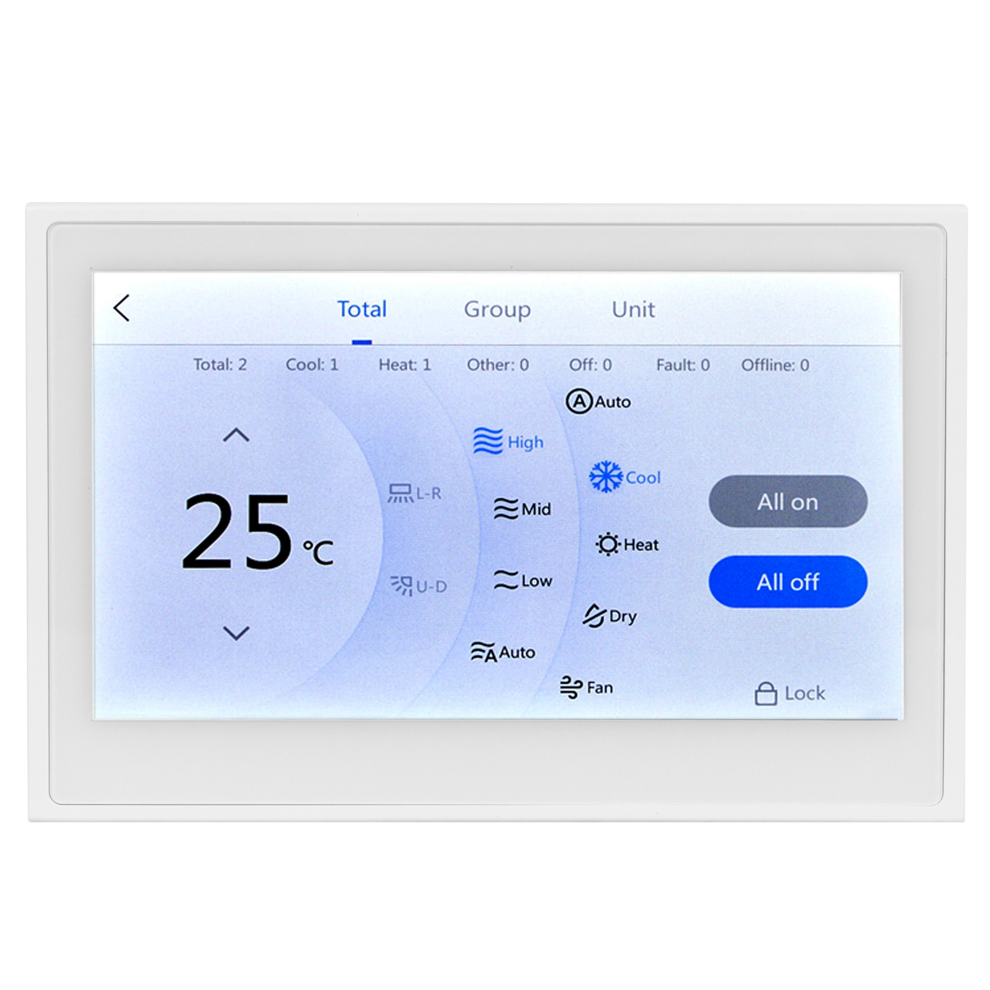Групповой пульт предназначен для управления с одного пульта до 64 внутренними блоками полупромышленных сплит-систем Ballu серии Universal 3, DC. Им можно управлять такими основными функциями как температура, режим работы, скорость воздушного потока и др.
